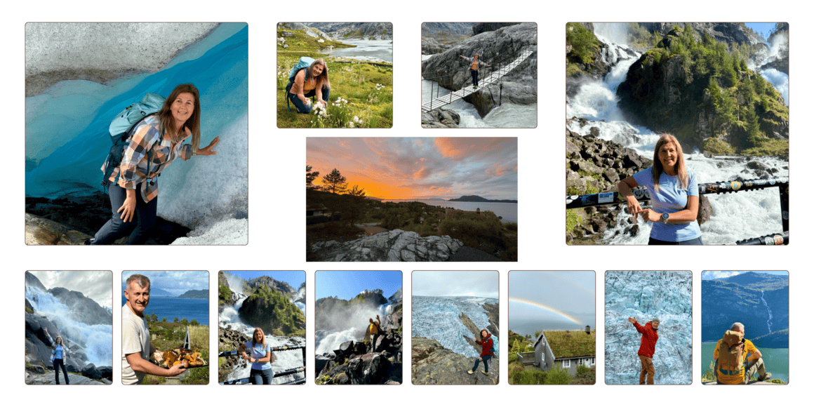 Były wodospady tak głośne, że rozmowy schodziły na gesty. Lodowce, przy których człowiek automatycznie cichnie, nawet jeśli wcale tego nie planował. Mostki, ścieżki i podejścia, które wyglądały niepozornie, a kończyły się widokiem robiącym lekkie spięcie w kolanach. Były też zachody słońca, tęcze nad domem i ten norweski luz, w którym nikt się nie spieszy – nawet pogoda.